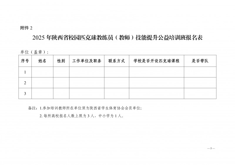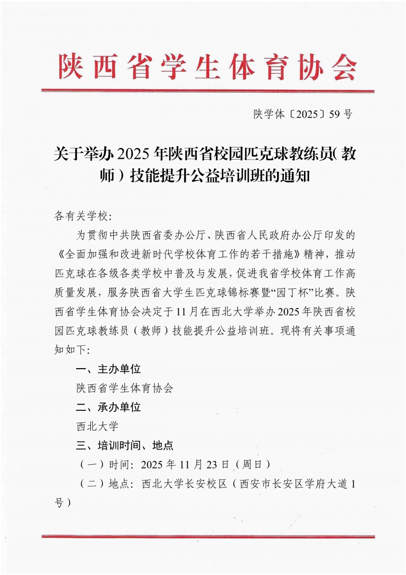 关于举办2025年陕西省校园匹克球教练员(教师)技能提升公益培训班的通知