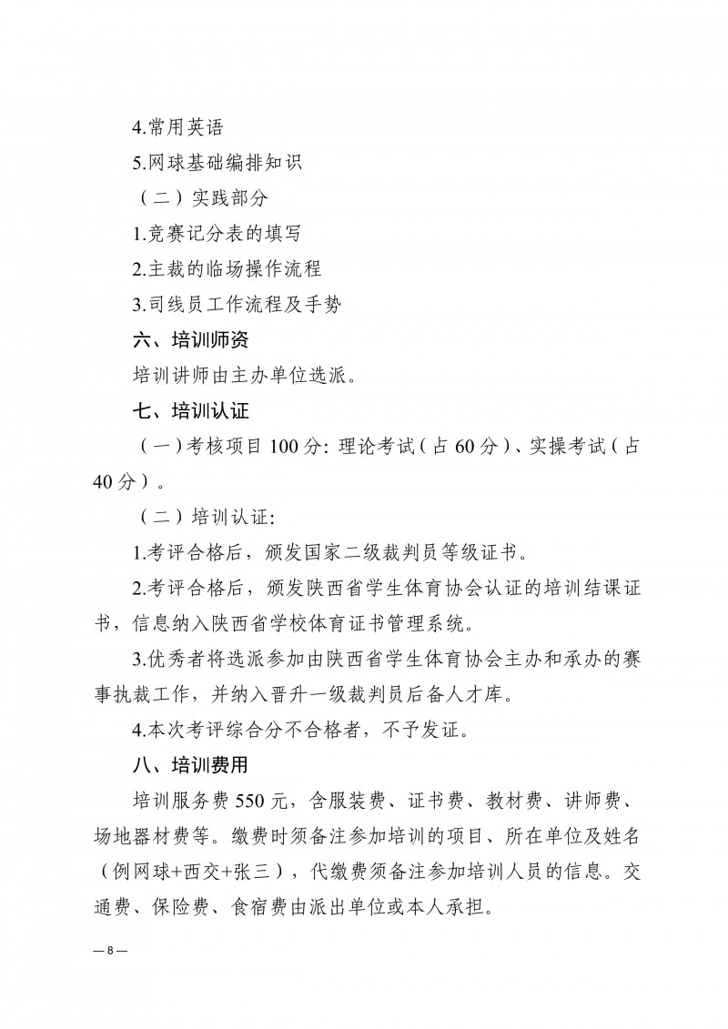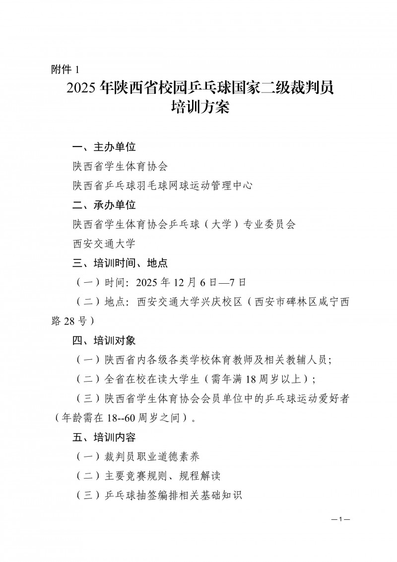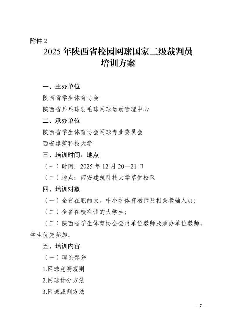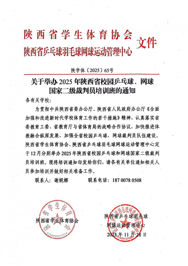 关于举办2025年陕西省校园乒乓球、网球国家二级裁判员培训班的通知