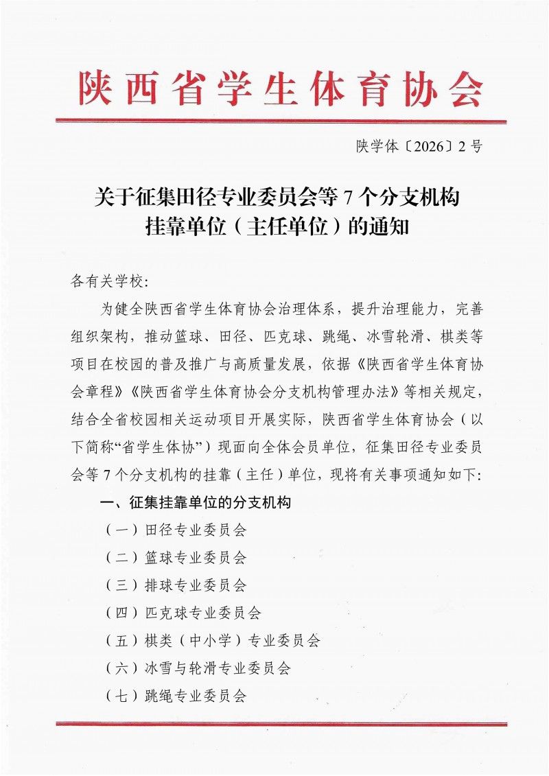 关于征集田径专业委员会等7个分支机构挂靠单位(主任单位)的通知