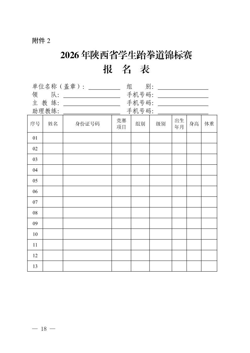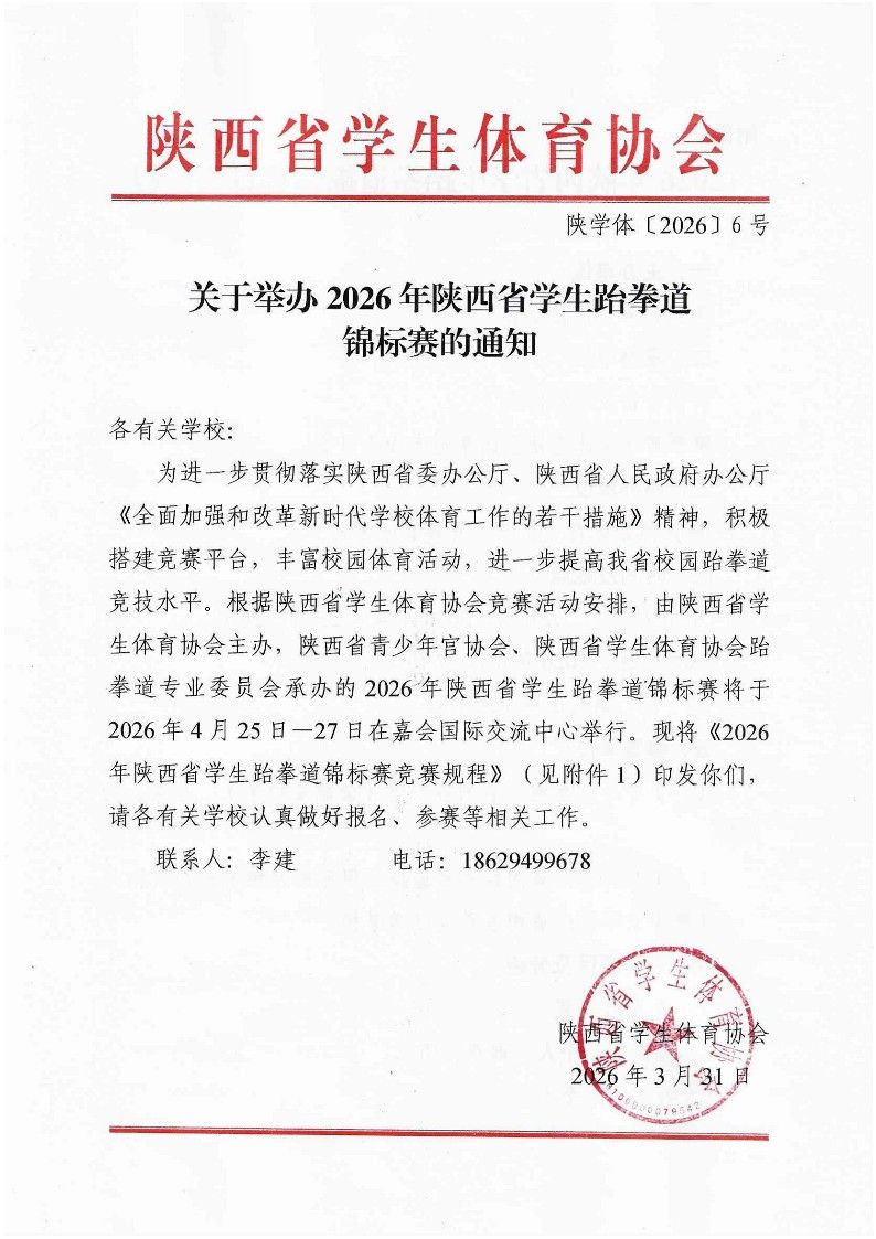 关于举办2026年陕西省学生跆拳道标赛的通知