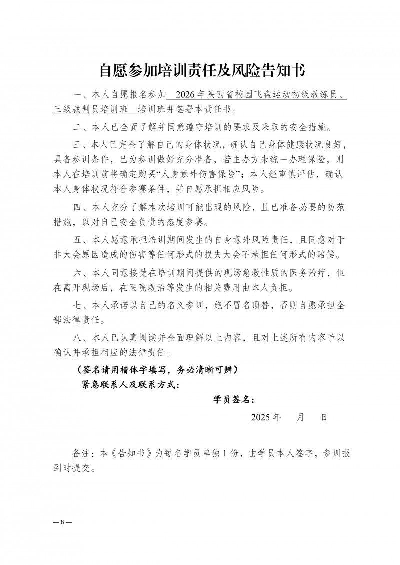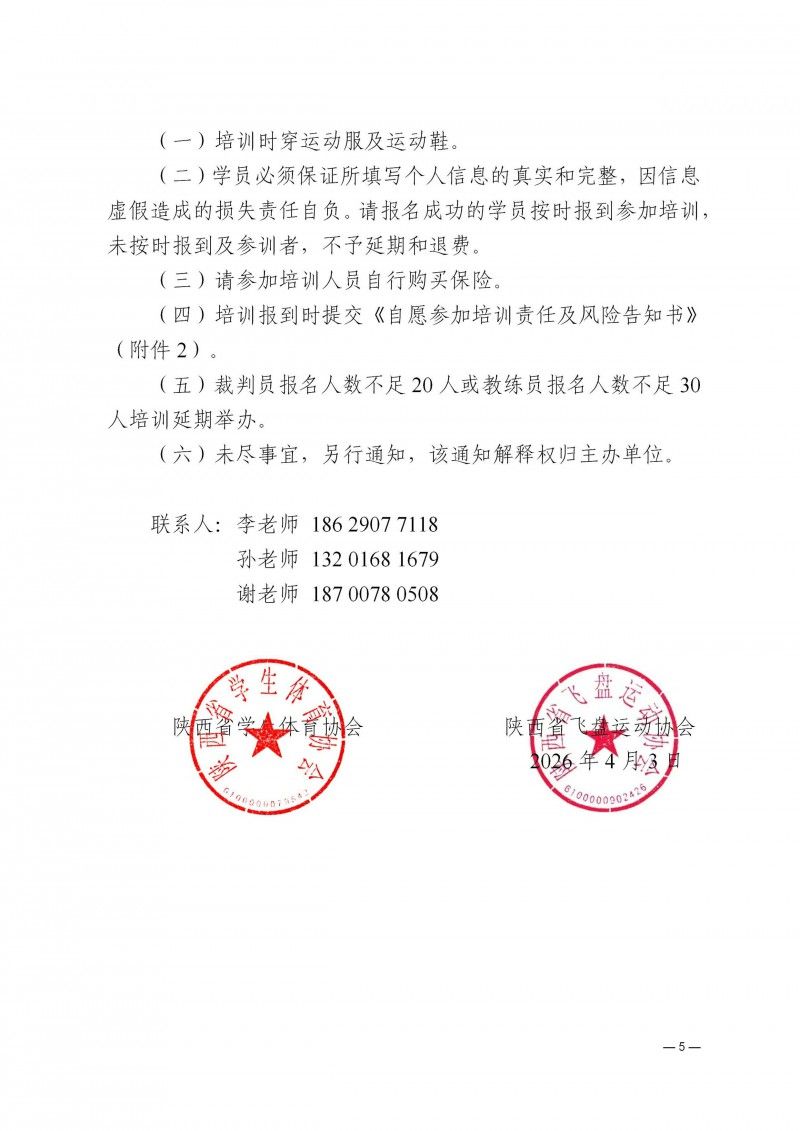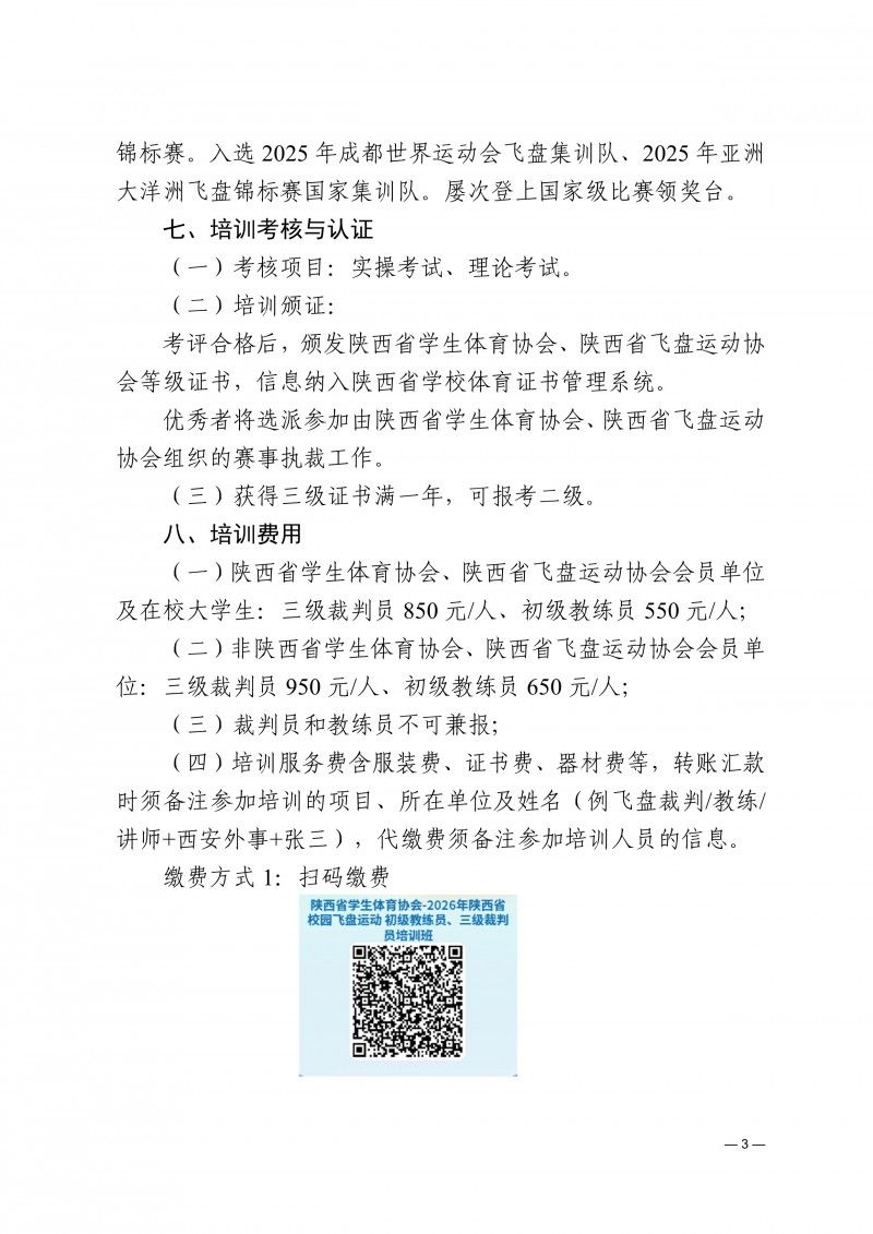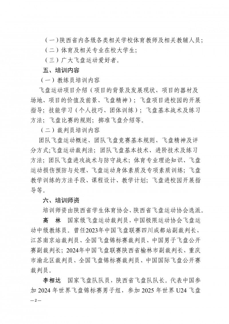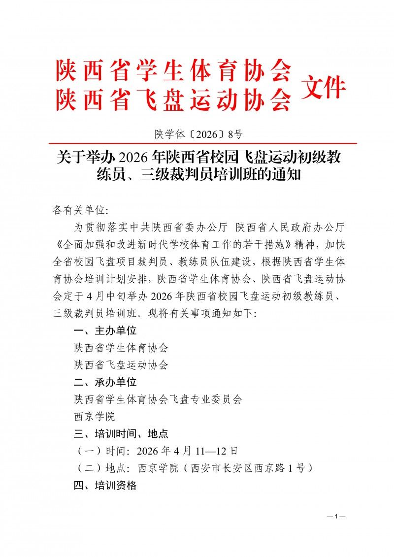 关于举办2026年陕西省校园飞盘运动初级教练员、三级裁判员培训班的通知