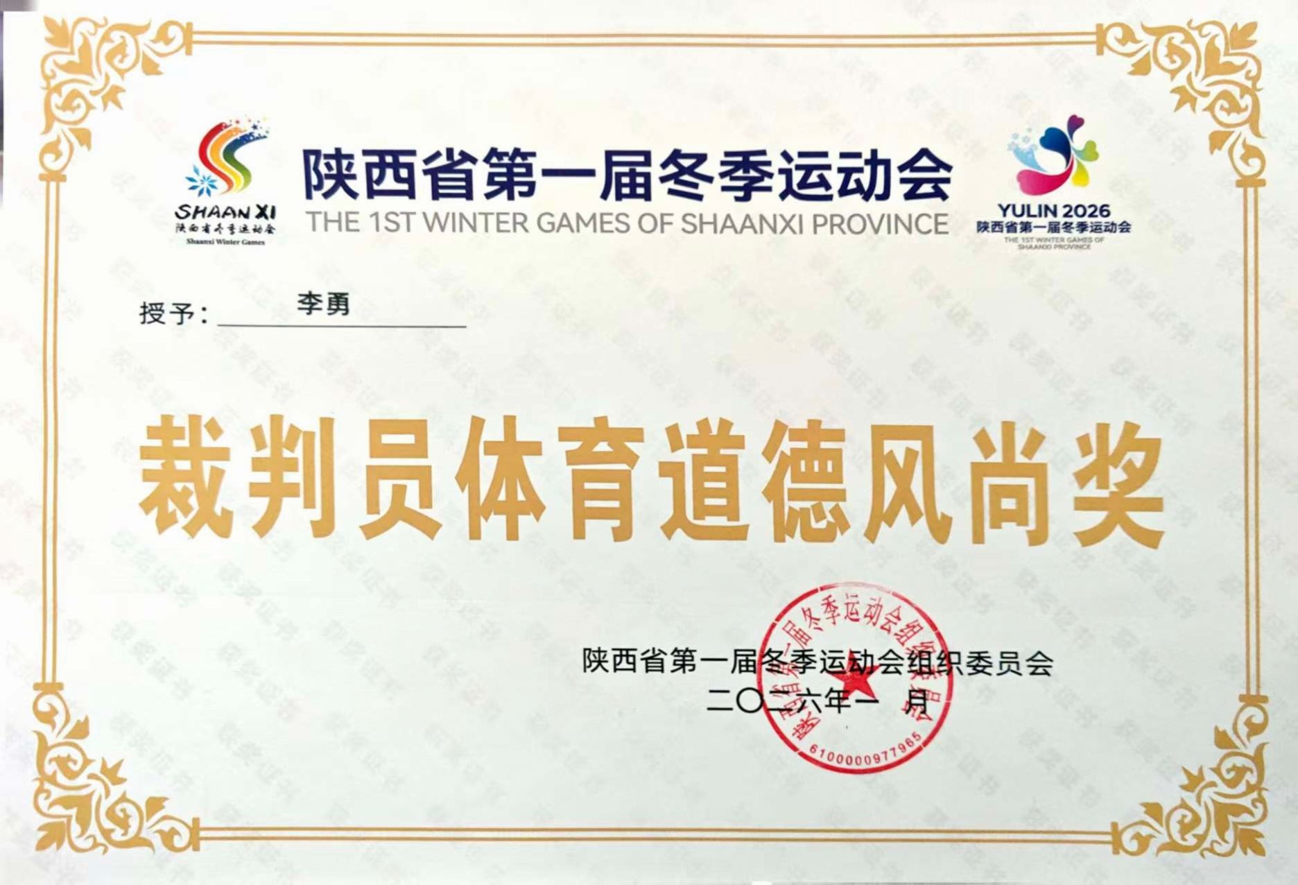 我校体育部李勇老师作为陕西省冰壶裁判员的优秀代表应邀参加了本次比赛的裁判工作并执裁了三个组别的决赛,他以专业、公正的高水准判罚,展现了我校教师的良好精神风貌,赛后获得裁判员体育道德风尚奖荣誉称号。